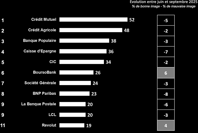 BAROMÈTRE POSTERNAK-IFOP Le Top des banques françaises sur la base de l'indice d'image