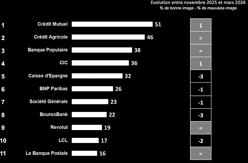 BAROMÈTRE POSTERNAK-IFOP Le Top des banques françaises sur la base de l'indice d'image